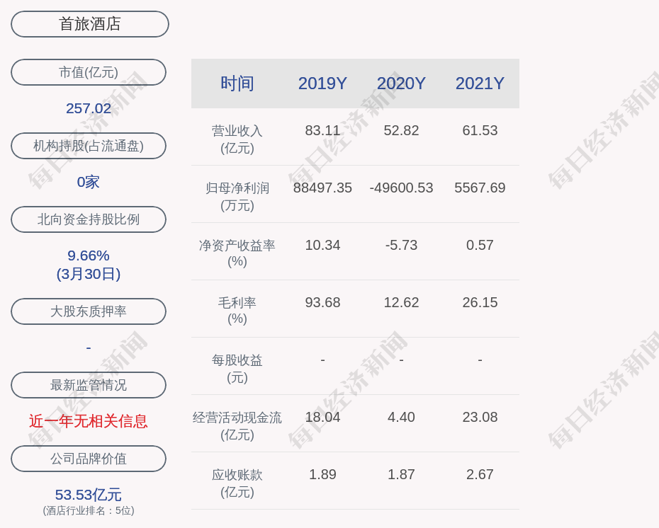 每经AI快讯,首旅酒店(SH 600258,收盘价:22.92元)3月31日晚间发布年度业绩报告称,2021年营业收入约61.53亿元,同比增加16.49%;归属于上市公司股东的净利润约5568万元;基本每股收益0.056元。不送红股、不转增。2020年同期营业收入约52.82亿元;归属于上市公司股东的亏损约4.96亿元;基本每股收益亏损0.5074元。