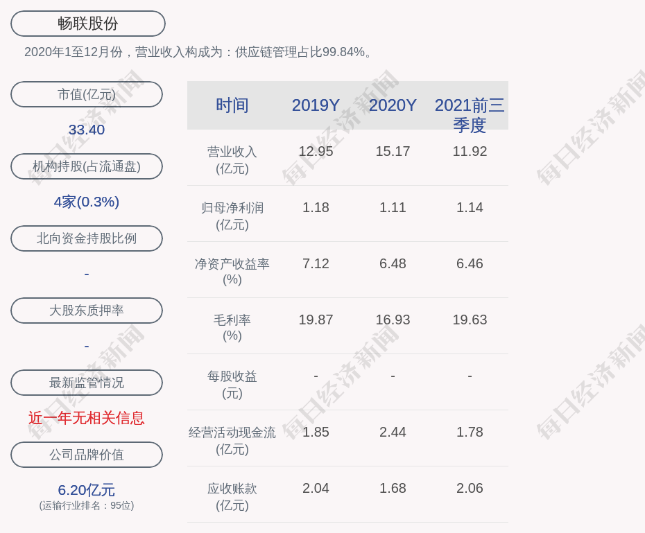2020年1至12月份,畅联股份的营业收入构成为:供应链管理占比99.84%。