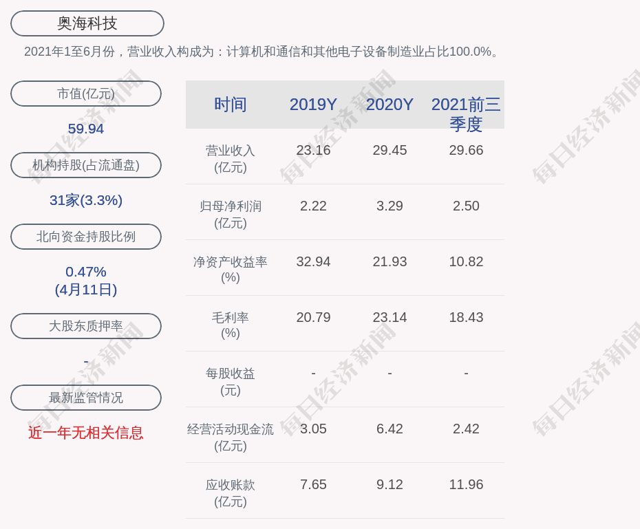 1. 奥海科技近30日内北向资金持股量增加14.02万股,占流通股比例增加0.24%;