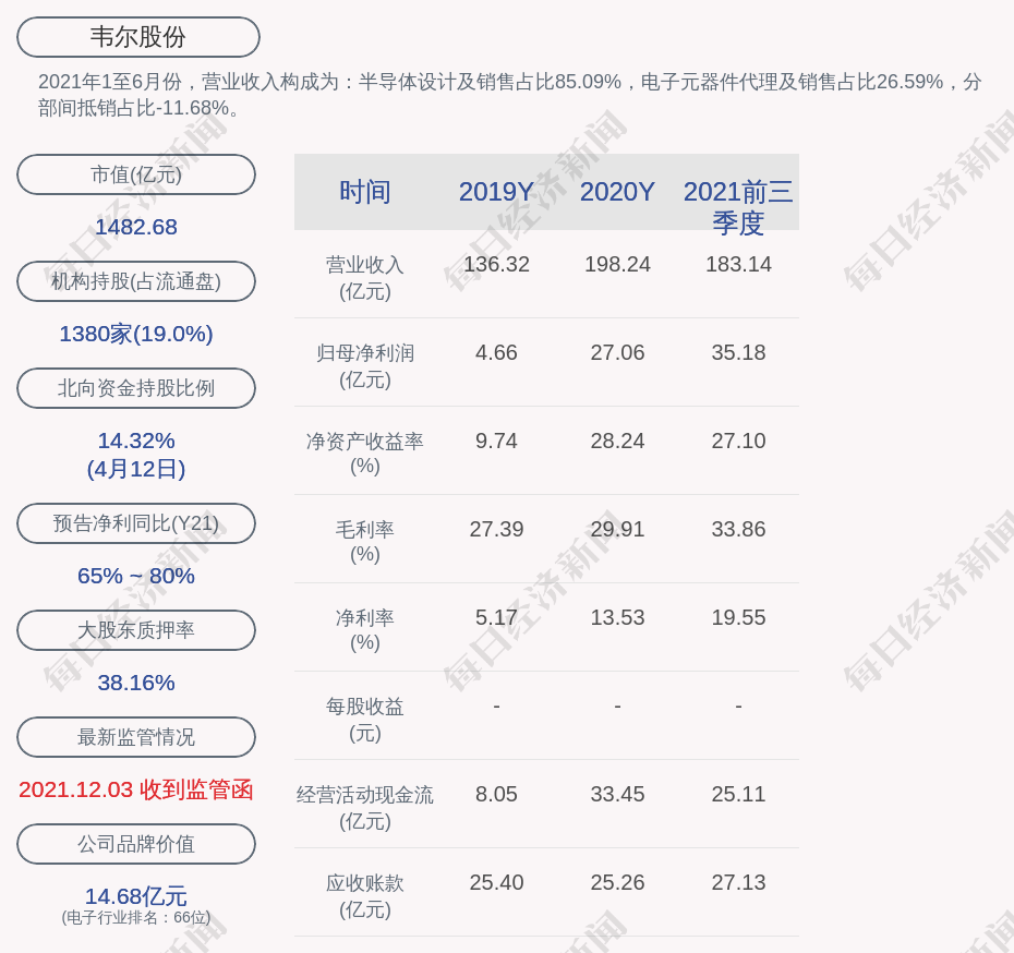 2. 近30日内共有1批机构对韦尔股份调研,合计调研的机构家数为21家。