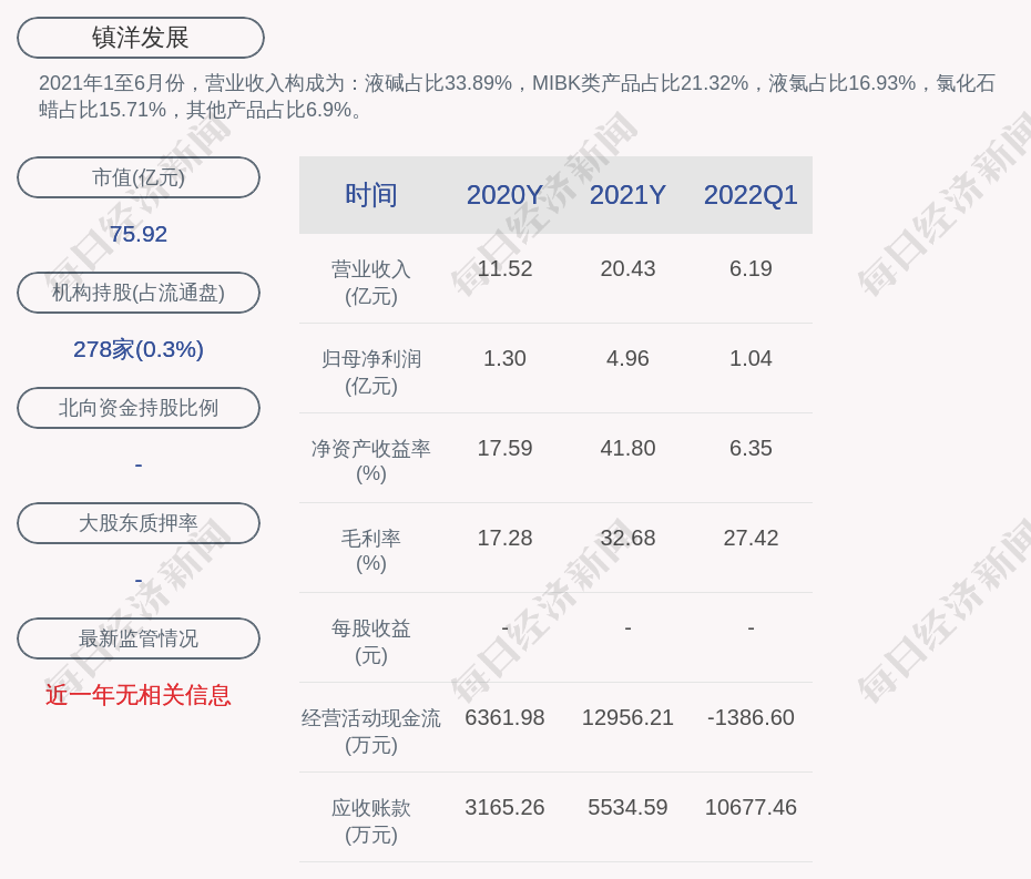 1. 近30日内无机构对镇洋发展进行调研。