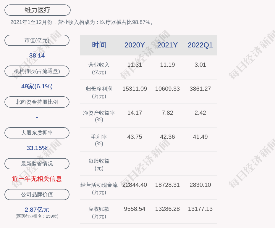 2021年1至12月份,维力医疗的营业收入构成为:医疗器械占比98.87%。