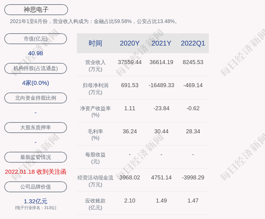2021年1至6月份,神思电子的营业收入构成为:金融占比59.58%,公安占比13.48%。