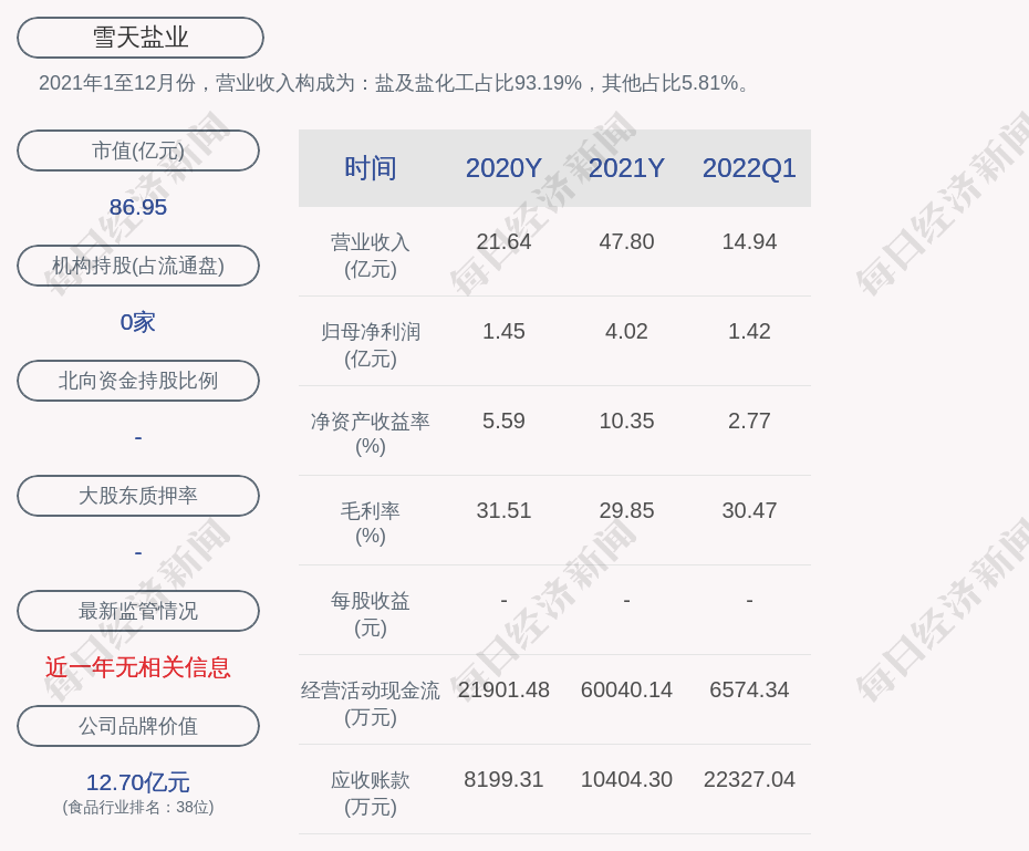 2021年1至12月份,雪天盐业的营业收入构成为:盐及盐化工占比93.19%,其他占比5.81%。