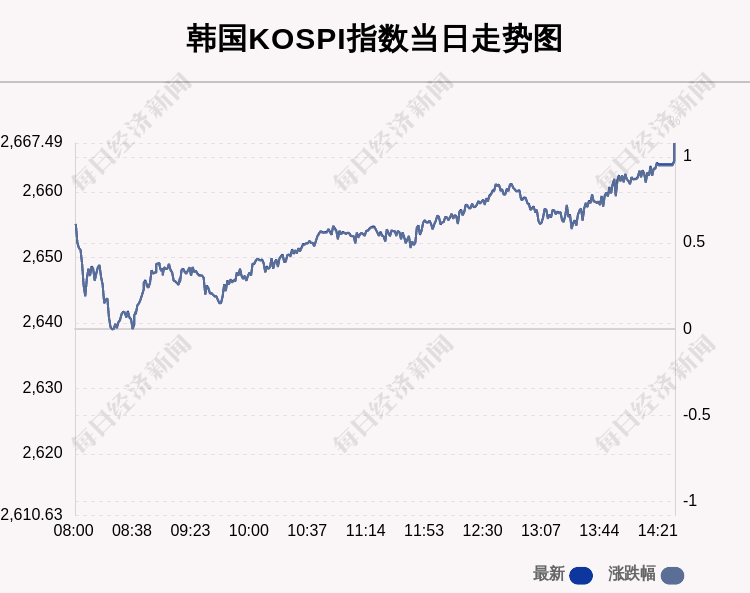 每经AI快讯:北京时间4月28日14:00,韩国KOSPI指数收盘上涨28.43点,涨幅为1.08%,报2667.49点。