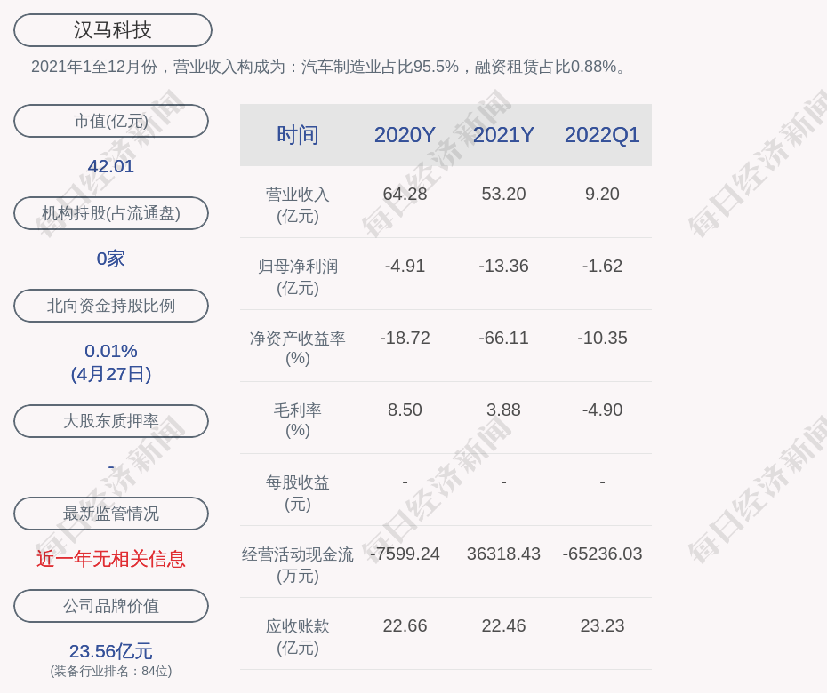 1. 汉马科技近30日内北向资金持股量未发生变化;