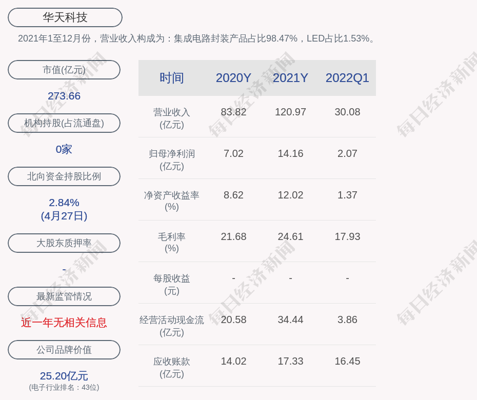 1. 华天科技近30日内北向资金持股量增加425.80万股,占流通股比例增加0.16%;