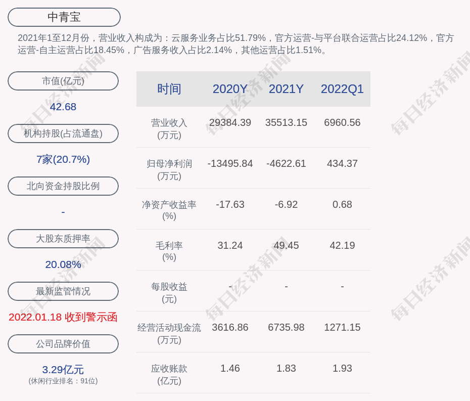 2021年1至12月份,中青宝的营业收入构成为:云服务业务占比51.79%,官方运营-与平台联合运营占比24.12%,官方运营-自主运营占比18.45%,广告服务收入占比2.14%,其他运营占比1.51%。