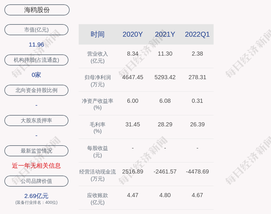 1. 近30日内无机构对海鸥股份进行调研。