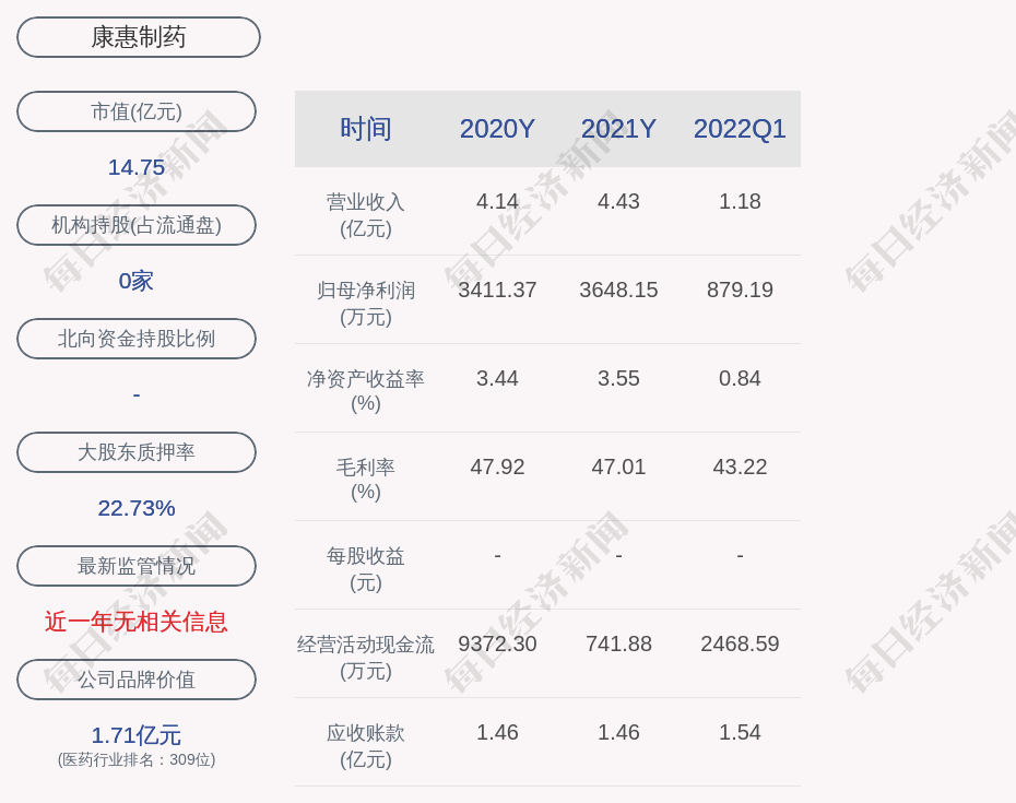 每经AI快讯,康惠制药(SH 603139,收盘价:14.77元)4月29日晚间发布公告称,截至本公告披露日,公司为控股子公司提供担保余额为9255万元,占公司最近一期经审计净资产的8.3%,不存在逾期担保情况。