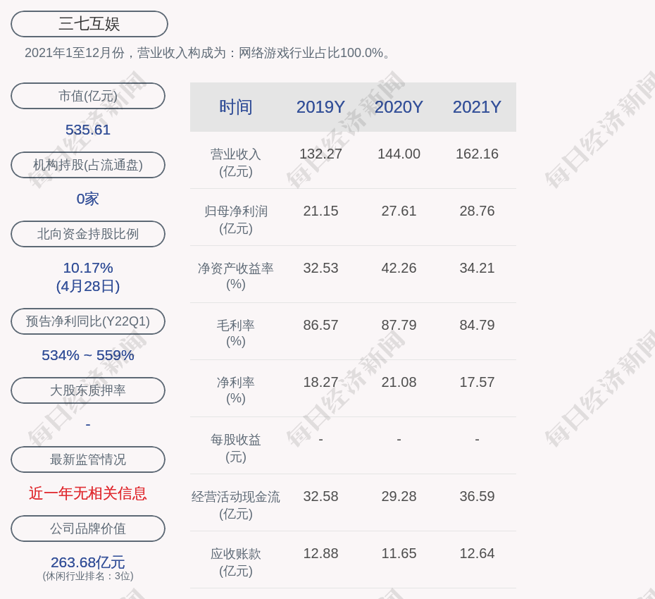 2021年1至12月份,三七互娱的营业收入构成为:网络游戏行业占比100.0%。