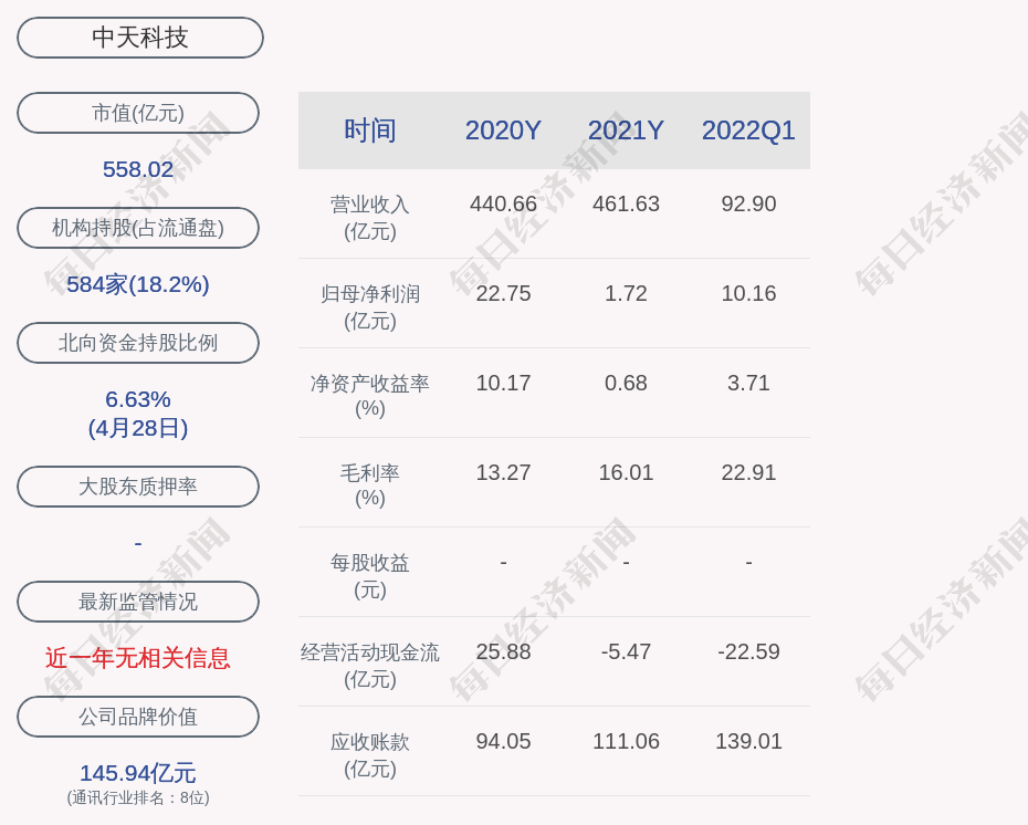 每经AI快讯,中天科技(SH 600522,收盘价:16.35元)4月29日晚间发布年度业绩报告称,2021年营业收入约461.63亿元,同比增加9.7%;归属于上市公司股东的净利润约1.72亿元,同比减少92.43%;基本每股收益0.057元,同比减少92.44%。拟每10股派发现金股利1元(含税)。