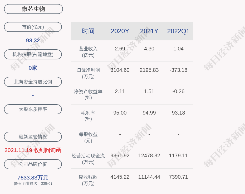 每经AI快讯,微芯生物(SH 688321,收盘价:22.72元)4月30日发布一季度业绩公告称,2022年第一季度营收约1.04亿元;归属于上市公司股东的净利润亏损约373万元。