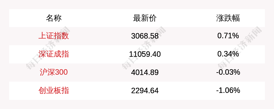 截至北京时间14:30,上证指数报3068.58点,涨0.71%,深证成指报11059.40点,涨0.34%,沪深300报4014.89点,跌0.03%,创业板指报2294.64点,跌1.06%