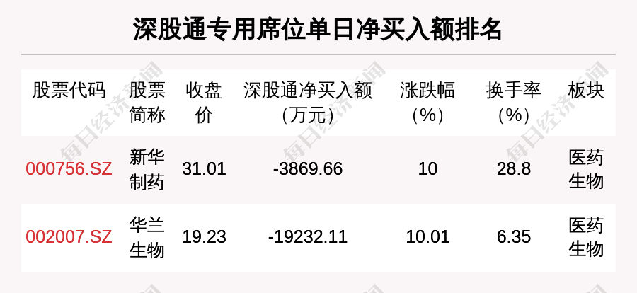 在龙虎榜中,涉及深股通专用席位的个股有2只,华兰生物的深股通专用席位净卖出额最大,净卖出1.92亿元。