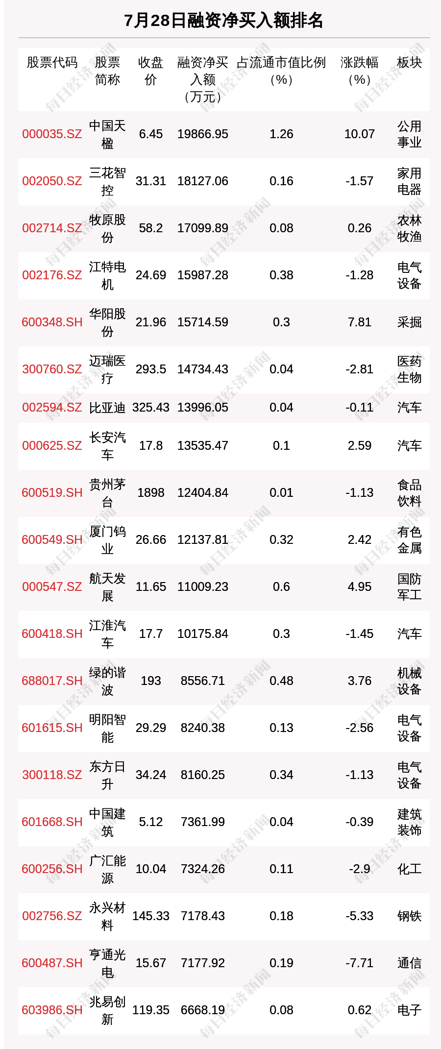 从融资资金净买入金额来看,共有12只个股净买入金额超亿元,其中中国天楹、三花智控、牧原股份排名前三,买入金额分别为1.99亿元、1.81亿元、1.71亿元。