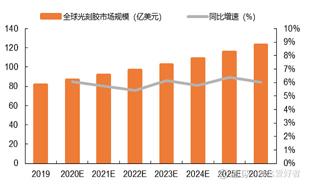 据TECHCET预测,2021年全球半导体光刻胶市场规模将同比增长11%,达到19亿美元。在全球缺货的大环境下,芯片制造,尤其是晶圆代工产能供不应求为半导体光刻胶提供了持久的增长动力。未来几年,全球半导体光刻胶市场将保持稳定的增长。
