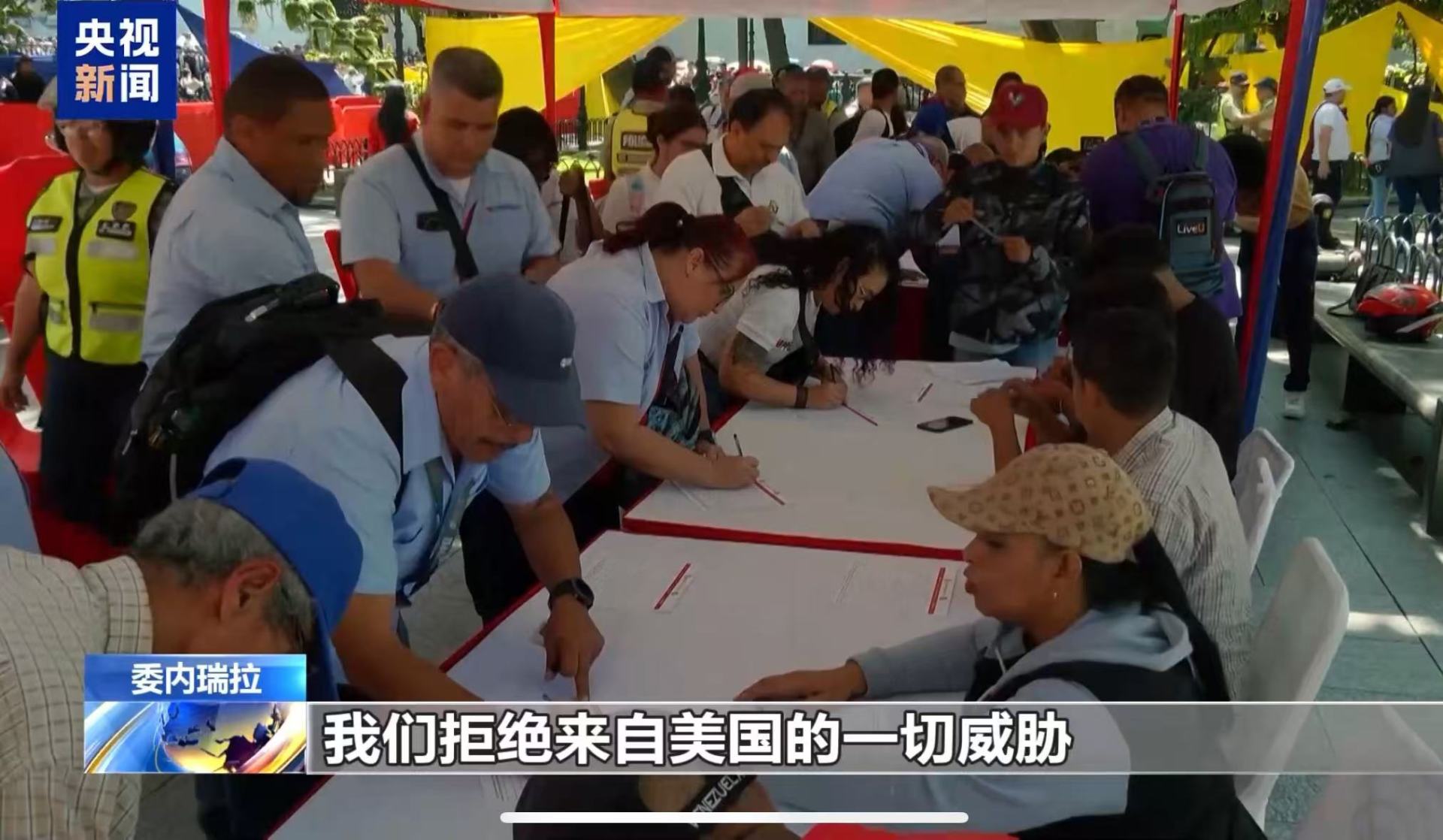 委内瑞拉民众排队参军反对美国侵略 (图片来源:央视新闻截图)