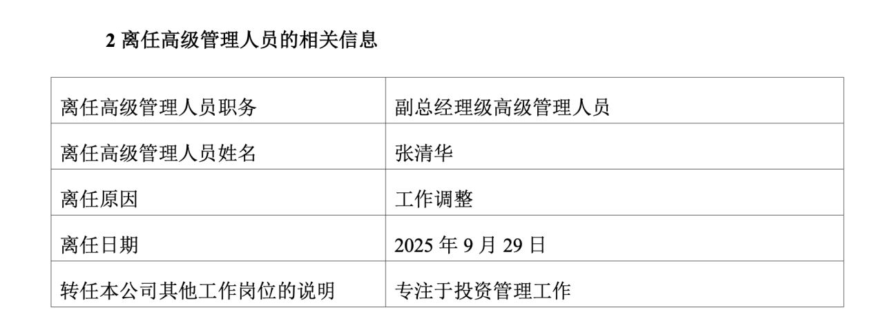 《每日经济新闻》记者获悉,9月29日晚间,易方达基金发布公告称,因工作调整,张清华不再担任副总经理级高级管理人员职务,将专注于投资管理工作。