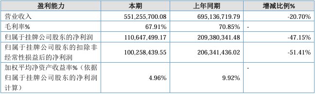 而今年4月披露的2024年年报显示,公司全年营收12.36亿元,同比下降7.41%;净利润3.56亿元,同比下降15.89%。