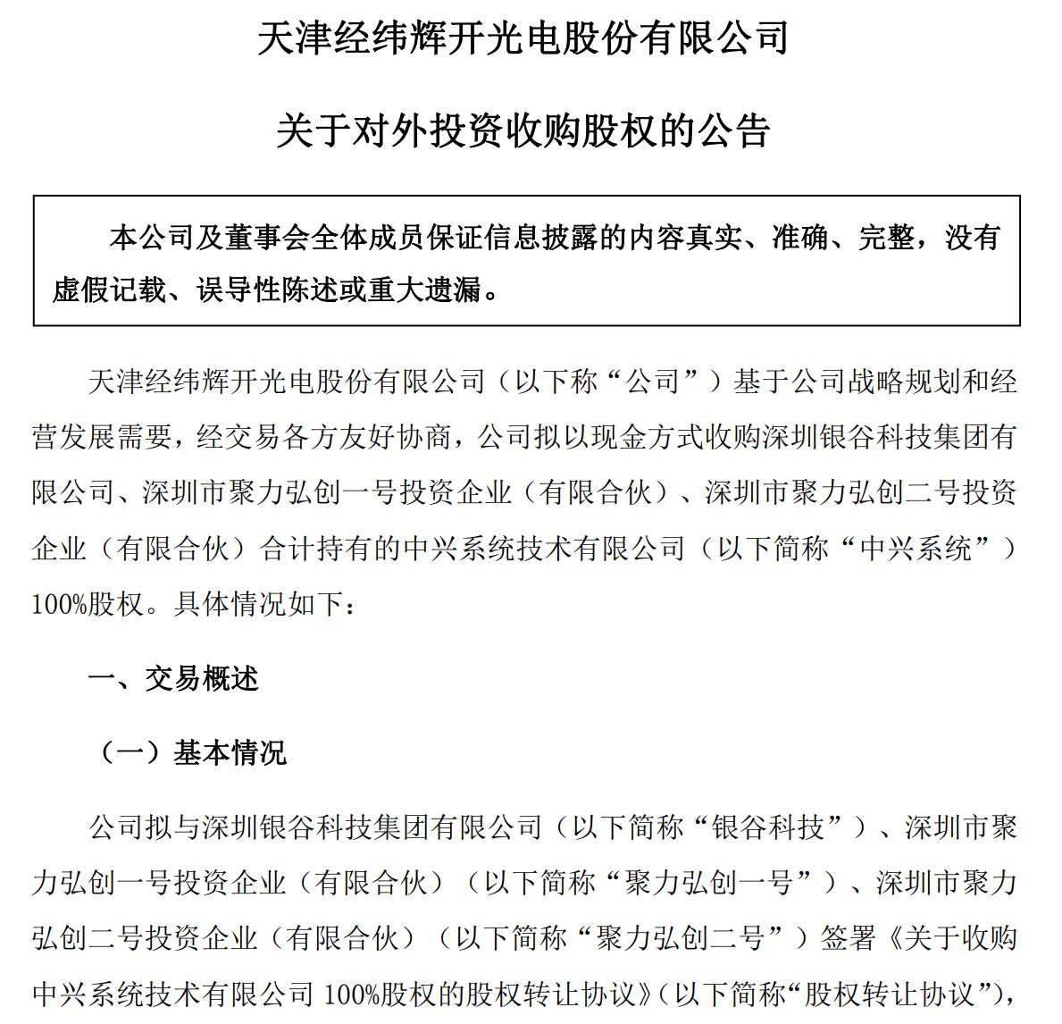 10月17日晚,经纬辉开(SZ300120,股价10.27元,市值58.99亿元)发布公告,宣布拟以8.5亿元现金收购深圳银谷科技集团有限公司(以下简称“银谷科技”)、深圳市聚力弘创一号投资企业(有限合伙)(以下简称“聚力弘创一号”)、深圳市聚力弘创二号投资企业(有限合伙)(以下简称“聚力弘创二号”)合计持有的中兴系统技术有限公司(以下简称“中兴系统”)100%股权。交易完成后,中兴系统将纳入经纬辉开合并报表范围,而中兴系统股东则承诺,标的公司2025年、2026年、2027年累计实现净利润不低于2.15亿元。