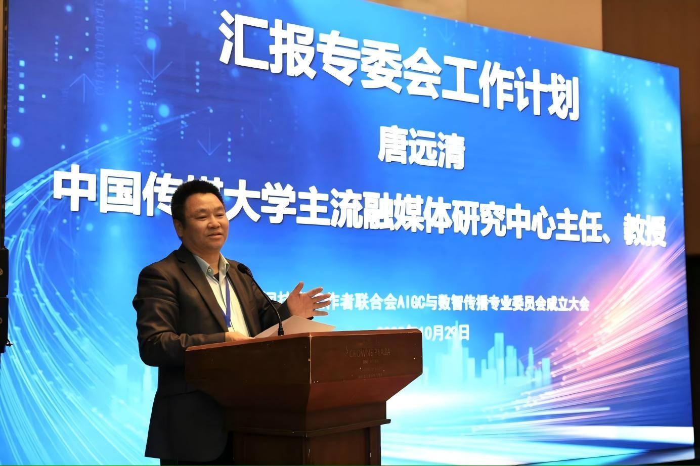 当选主任委员、中国传媒大学主流融媒体研究中心主任唐远清,在发言中汇报了专委会的五方面工作思路:一是筑牢根基,坚守“方向盘”:将导向与伦理贯穿于技术应用的全流程;二是聚焦前沿,打造“策源地”:推动产学研用深度融合的原始创新;三是注重实效,搭建“立交桥”:加速创新成果从实验室走向应用场;四是汇聚英才,建设“新高地”:构建多层次、开放型的人才培养体系;五是规范运行,树立“标杆尺”:确保专委会工作的公开、公平与高效。他最后表示,专委会作为全国第一家明确以推动AIGC与数智传播技术创新及应用落地为目标的学术社团,将在全体会员、委员的共同努力下,为推动我国新闻技术事业的繁荣发展,为构建具有强大影响力和竞争力的新型主流媒体格局,作出不可替代的贡献。
