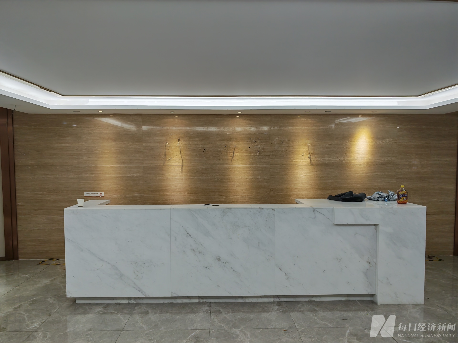 12月17日晚,金雅福总部办公室前台,公司名称字样已摘下。 图片来源:每经记者 孔泽思 摄