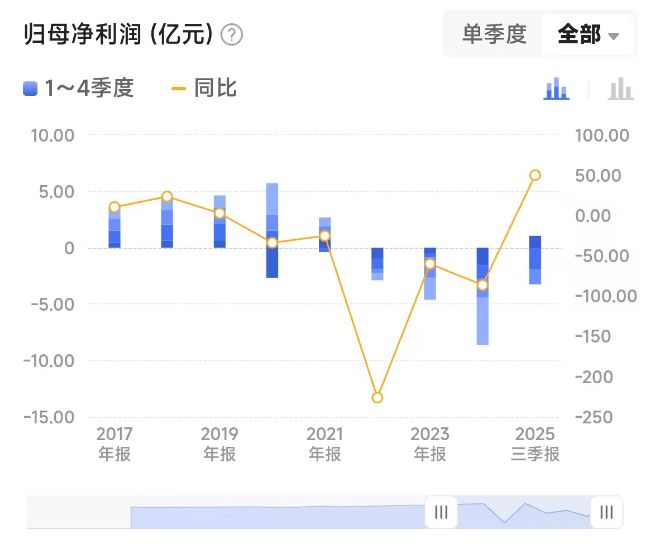 回溯过往,公司2022年至2024年累计亏损超16亿元,其中2024年营收33.95亿元,同比下滑18.83%;归母净利润亏损8.64亿元,同比降幅达86.48%。2025年上半年,公司亏损8798万元,看似亏损收窄,但扣非归母净亏损仍高达3.17亿元,盈利主要依赖资产处置与股权转让等非经常性收益,主营业务盈利能力薄弱。