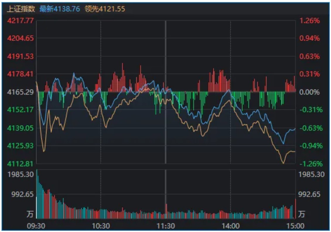 但在约13:59,沪指最后一次短暂翻红后,大盘一路下行,回调格局终于落定。