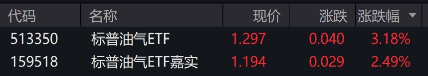受盘面影响,标普油气相关ETF早盘涨超2%。