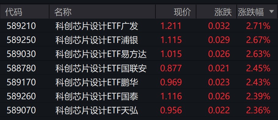 受盘面影响,科创芯片设计相关ETF涨超2%。