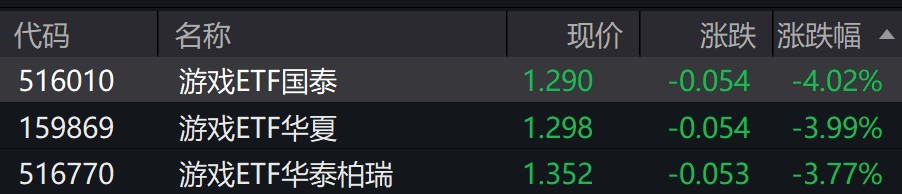 游戏概念股走弱,巨人网络、恺英网络跌超9%,三七互娱跌超4%。