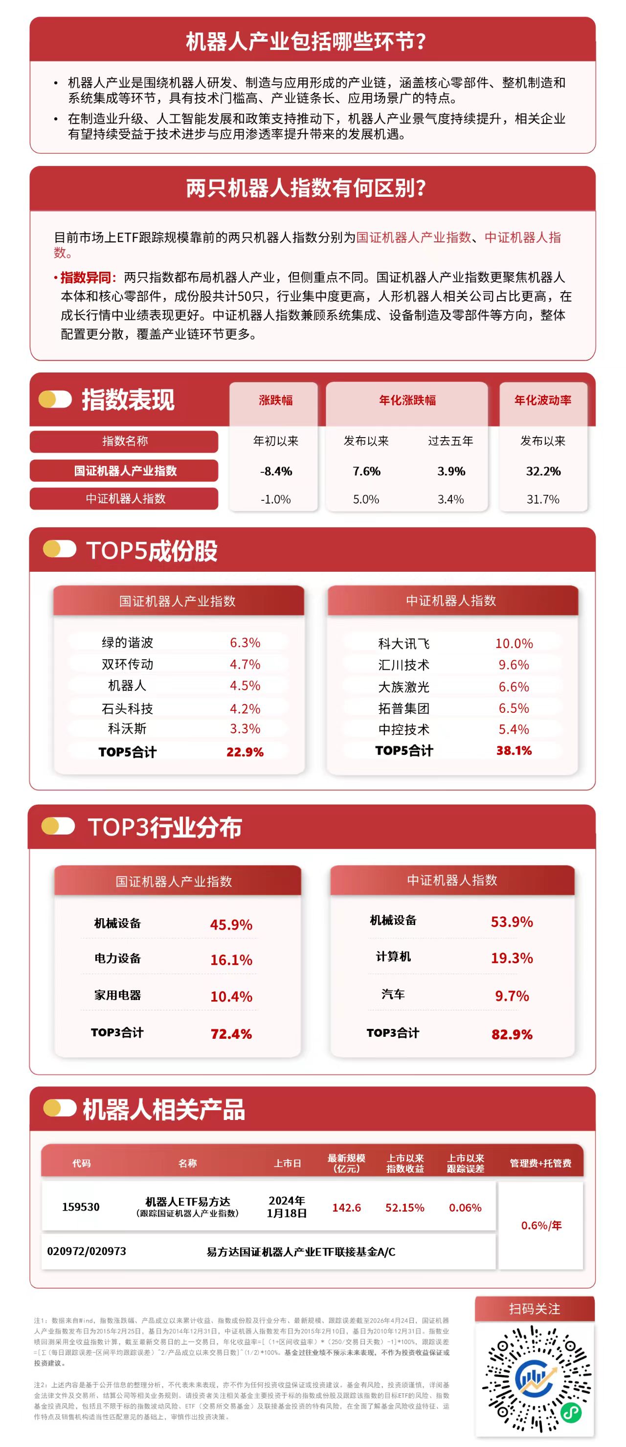 截至收盘,国证机器人产业指数上涨1.9%,机器人ETF易方达(159530)全天成交额近5亿元、较前一交易日放量。国证机器人产业指数聚焦人形机器人本体和零部件,因编制方法设置“核心层”,相比同类指数更加聚焦人形机器人。