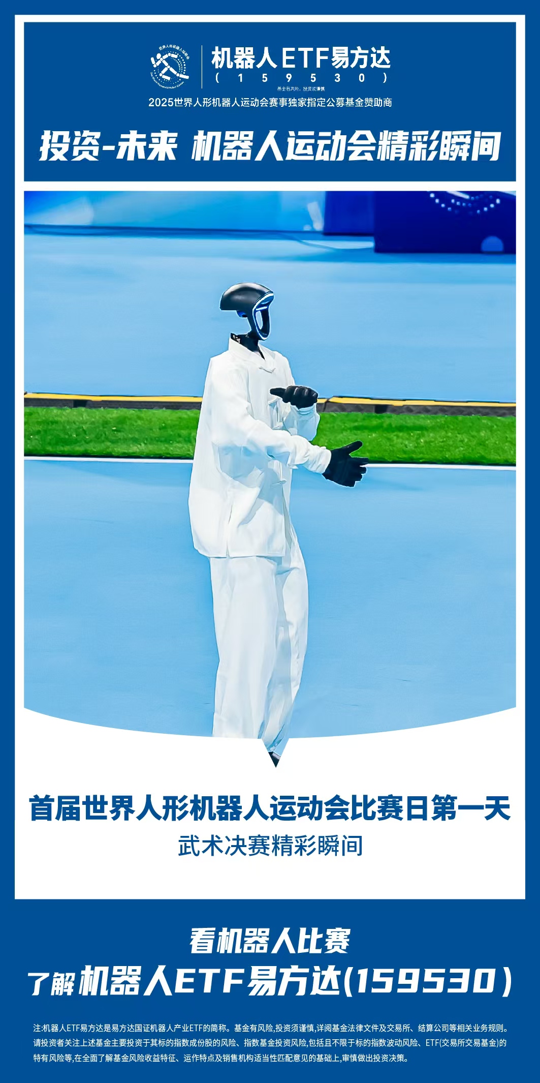据悉,作为这场科技盛会的唯一公募基金官方赞助商,机器人ETF易方达(159530)将深度融入赛事,为这场前所未有的竞技盛宴注入金融动能。该产品跟踪的国证机器人产业指数中,人形机器人相关个股占比近八成,“人形含量”在ETF跟踪的指数中居首,是更加纯粹的“人形机器人”指数,可助力投资者精准把握产业发展机遇。