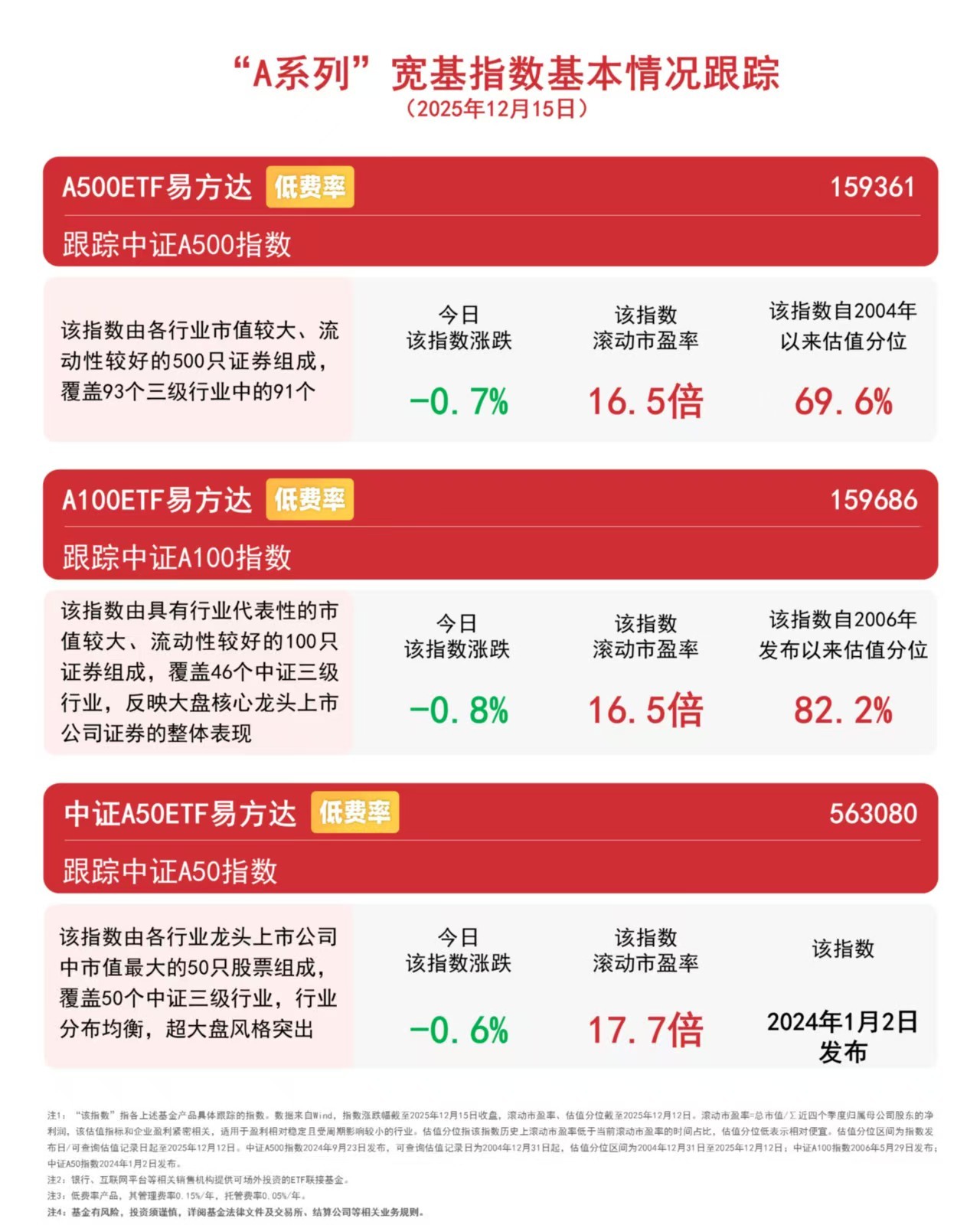 截至收盘,中证A500指数下跌0.7%,中证A100指数下跌0.8%,中证A50指数下跌0.6%。