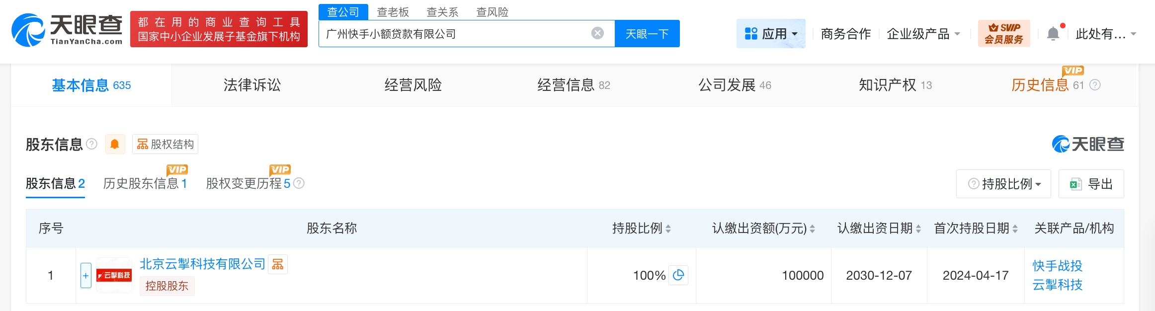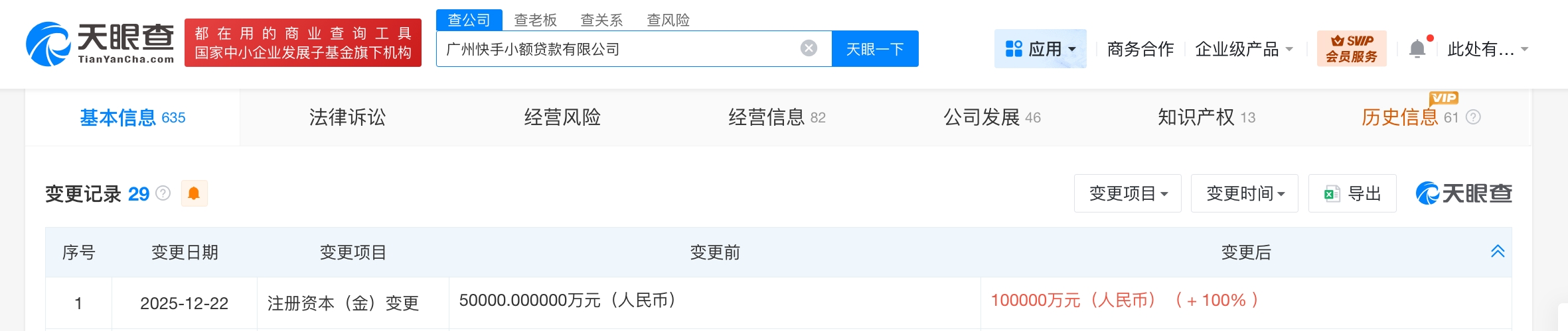 每经AI快讯,天眼查App显示,近日,广州快手小额贷款有限公司发生工商变更,注册资本由5亿元人民币增至10亿元人民币,增幅100%。该公司成立于2016年1月,法定代表人为董宇,经营范围为小额贷款业务。股东信息显示,该公司由快手旗下北京云掣科技有限公司全资持股。