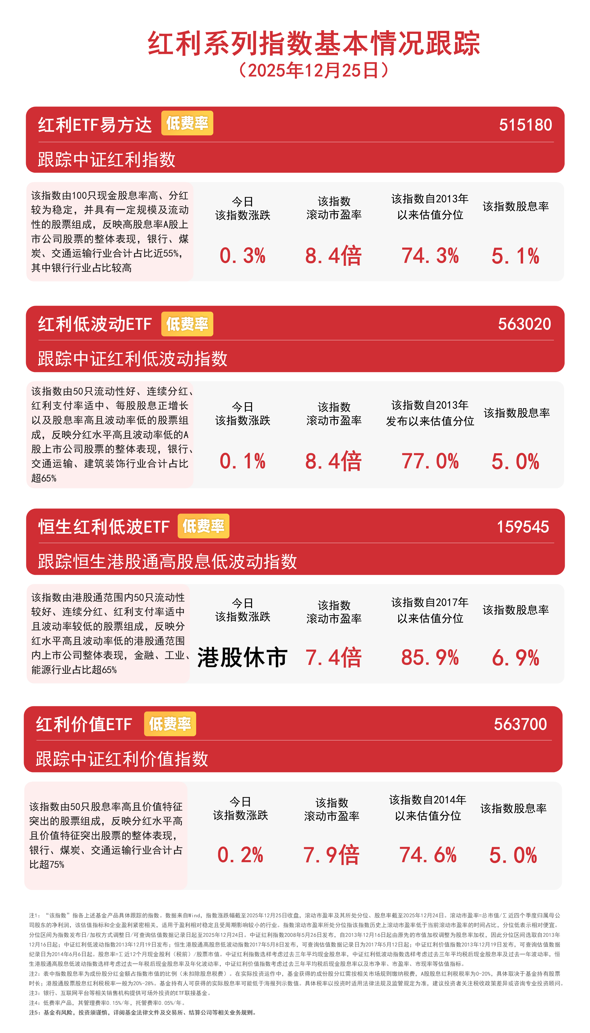 据悉,易方达基金是目前唯一一家红利类ETF全部实行低费率的基金公司,旗下恒生红利低波ETF(159545)、红利ETF易方达(515180)、红利低波动ETF(563020)、红利价值ETF(563700)、A500红利低波ETF(563510)等产品的管理费率均为0.15%/年,可助力投资者低成本布局高股息资产。