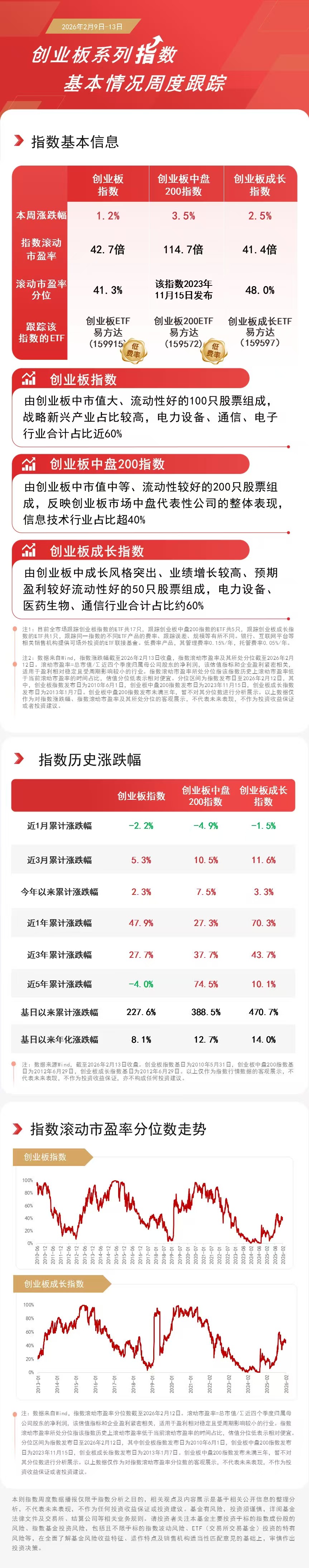 本周,创业板中盘200指数上涨3.5%,创业板成长指数上涨2.5%,创业板指数上涨1.2%。相关ETF交投活跃,创业板ETF易方达(159915)日均成交额近30亿元。
