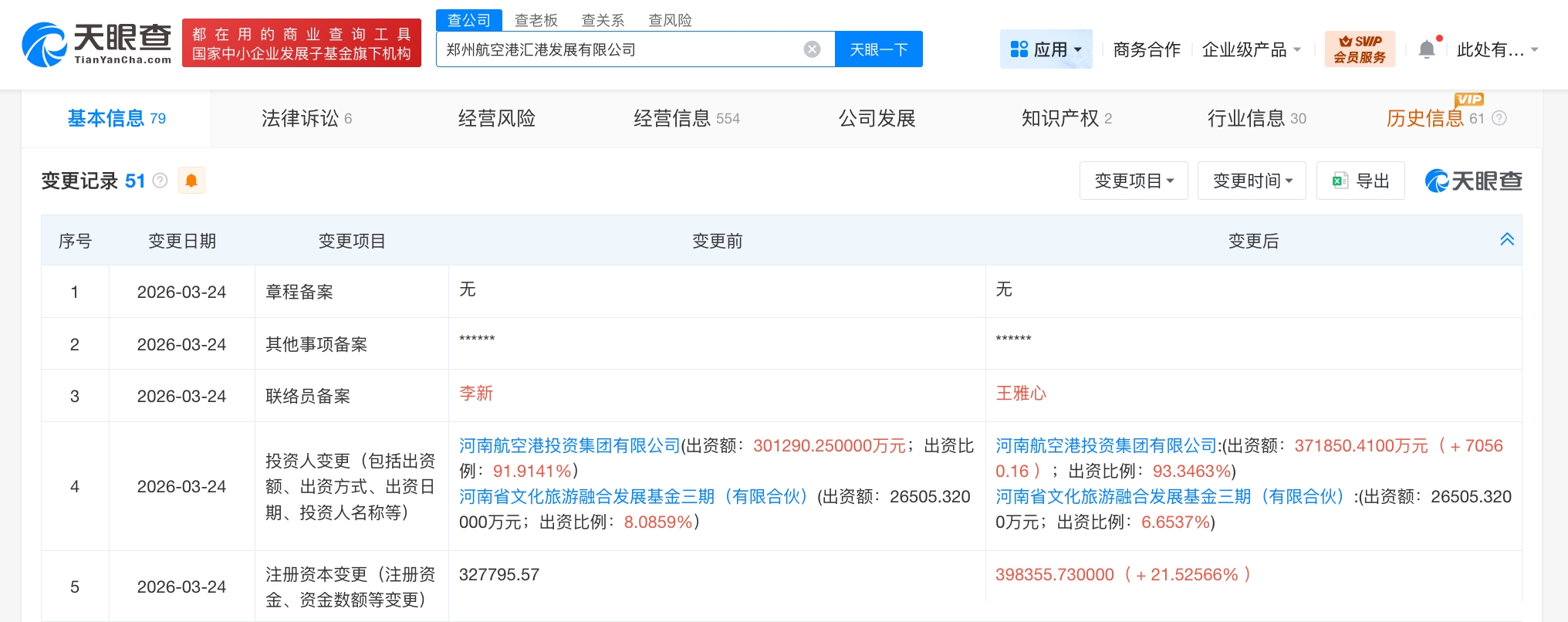 每经AI快讯,天眼查工商信息显示,近日,郑州航空港汇港发展有限公司发生工商变更,注册资本由约32.8亿元人民币增至约39.8亿元人民币,增幅约22%。该公司成立于2015年7月,法定代表人为李清斌,经营范围包括建设工程施工、建设工程监理、建设工程设计、招投标代理服务、工程造价咨询业务、城市绿化管理等。股东信息显示,该公司由河南航空港投资集团有限公司、河南省文化旅游融合发展基金三期(有限合伙)共同持股。