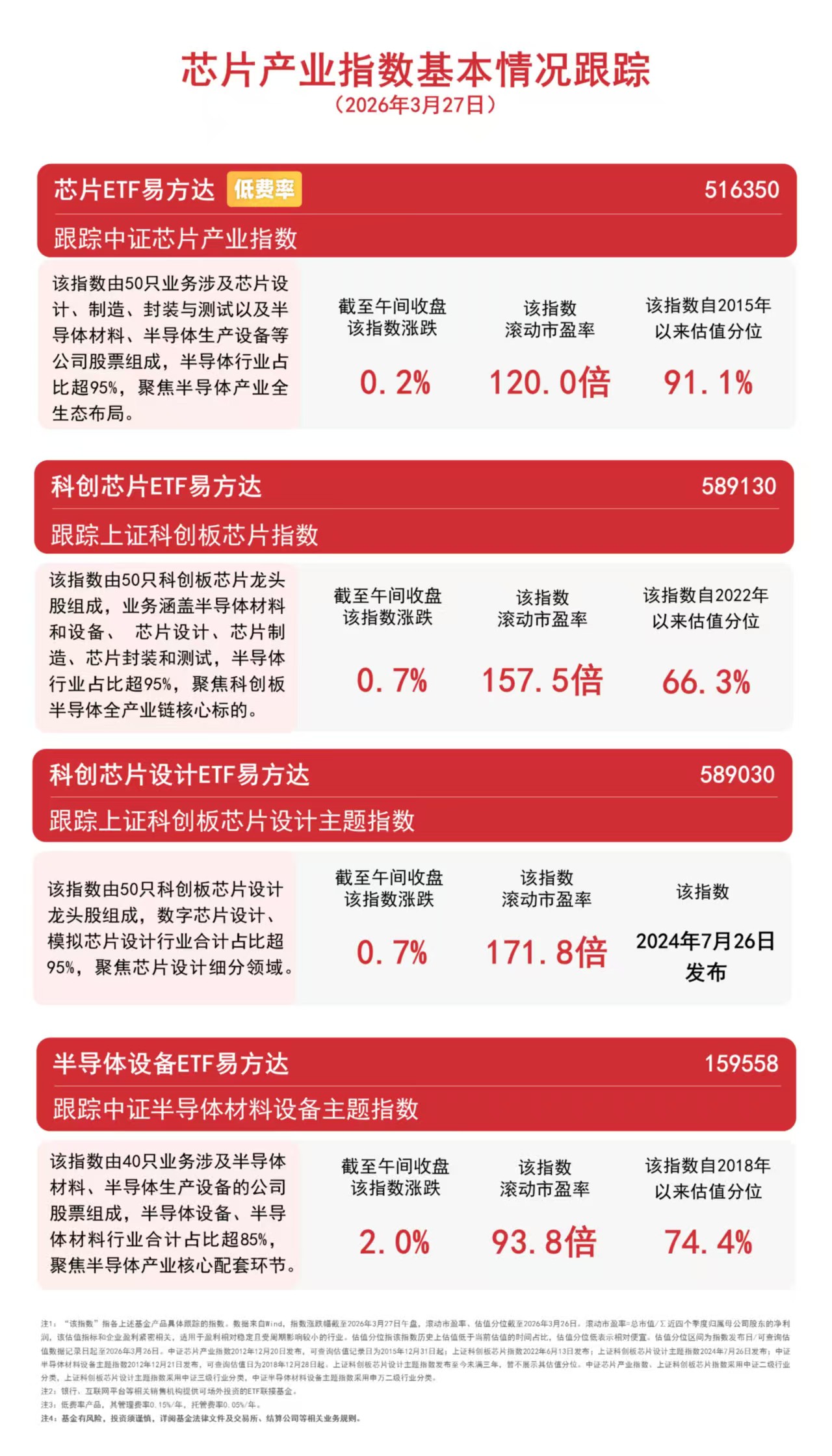 截至午间收盘,中证半导体材料设备主题指数上涨2.0%,上证科创板芯片指数、上证科创板芯片设计主题指数均上涨0.7%,中证芯片产业指数上涨0.2%。Wind数据显示,半导体设备ETF易方达(159558,联接基金A/C:021893/021894)此前两个交易日连续获资金净流入,合计8600万元。