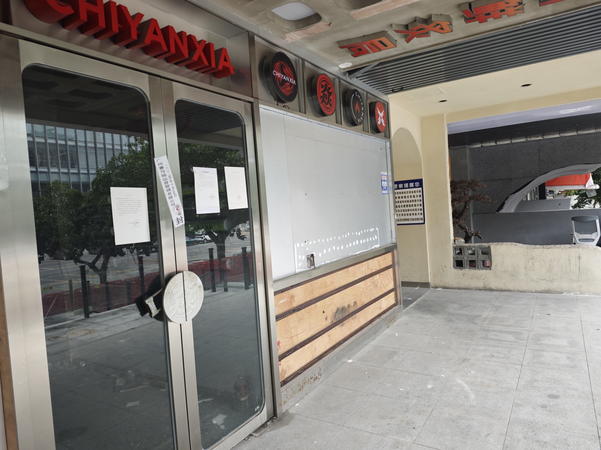 相关商铺门前已张贴各类公告 图片来源:每经记者 陈荣浩 摄